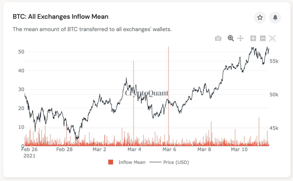 A new batch of close to 12,000 BTC was seen leaving Coinbase Pro, which triggered the price of BTC to rebound strongly off $54,000, sparking off a rally early week which eventually led to BTC breaking ATH and smashing $60,000 for the first time on Saturday.